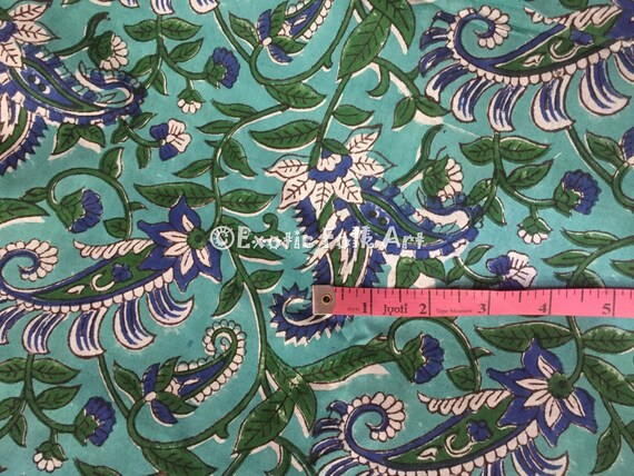 Green And Blue Floral Indian Block Print Hand Dyed Fabric Cotton Curtain Tablecloth Kitchen Cloth Cushion Cover Prints